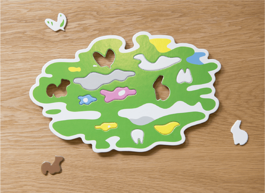 木蔭に集まる動物たちをイメージしてつくった香川県坂出にある歯科医院のロゴです。 子供が楽しめるパズルのDM等をデザインしました。 2014年ONESHOW DESIGNでファイナリストに選出されました。